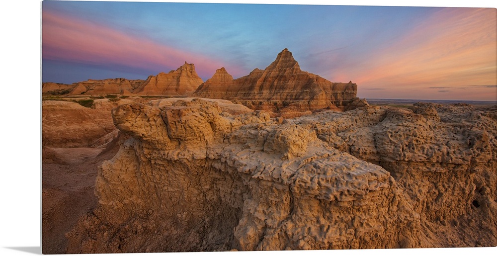<p>Twilight over the Hoodoos and rock formations in Badlands National Park, South Dakota</p>