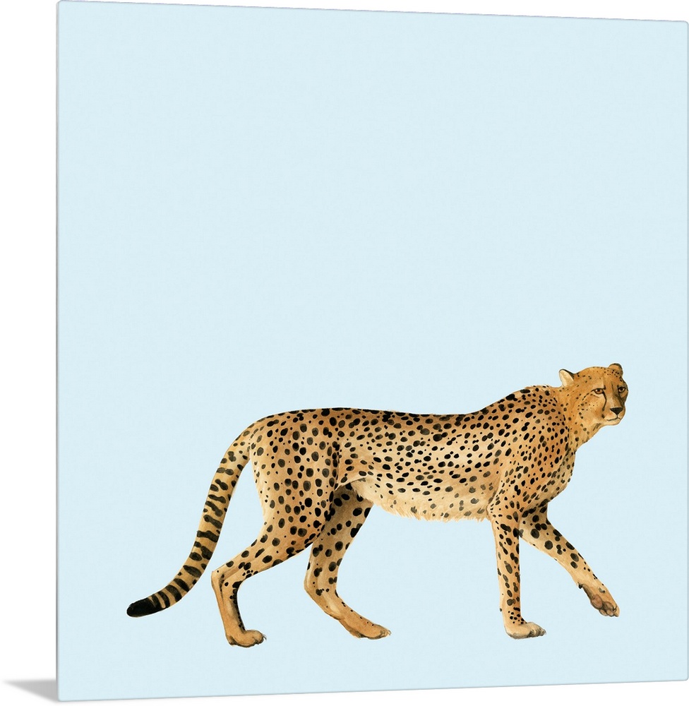 Art Children's Art Nursery Blue Wall Art Decorative Art Painting Grace Popp Watercolor Wildlife Leopard