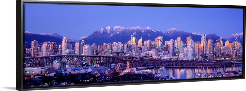 <p>The city skyline is packed with skyscrapers and a harbor full of boats is built into the shore in this panoramic wall art.</p>