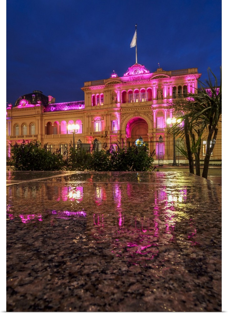 <p>Twilight view of the Casa Rosada on Plaza de Mayo, Monserrat, City of Buenos Aires, Buenos Aires Province, Argentina, South America</p>