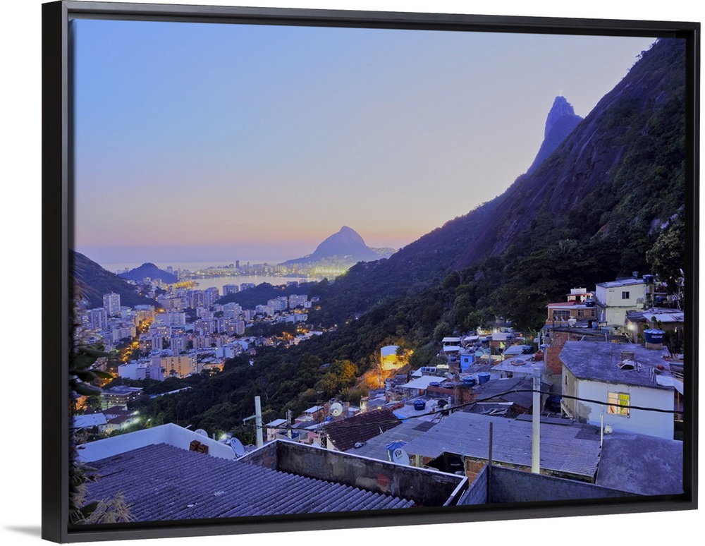 <p>Twilight view of the Favela Santa Marta with Corcovado and the Christ statue behind, Rio de Janeiro, Brazil, South America</p>