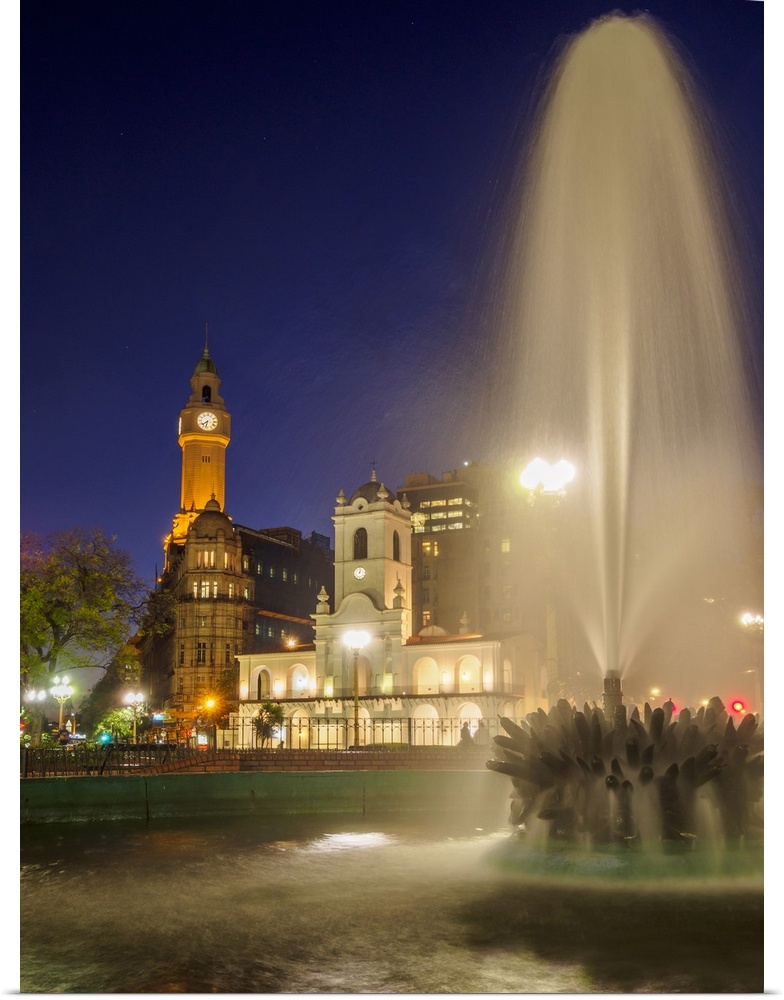 <p>Twilight view of the Plaza de Mayo, Monserrat, City of Buenos Aires, Buenos Aires Province, Argentina, South America</p>