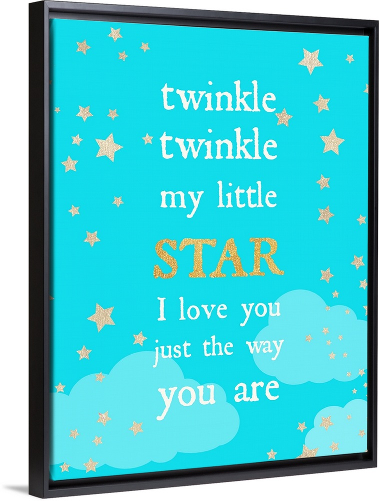 <p>Nursery artwork of a poem with golden stars over a blue sky.</p>