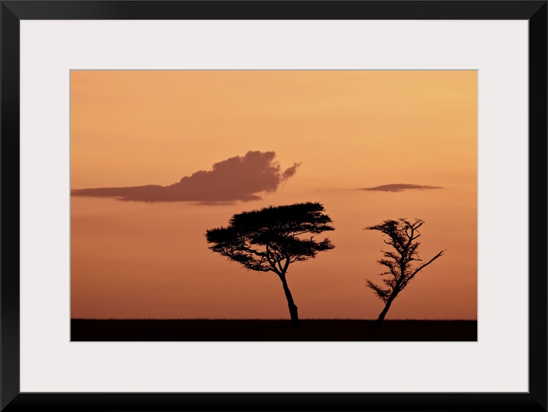 <p>Two acacia trees at dawn, Serengeti National Park, UNESCO World Heritage Site, Tanzania, East Africa, Africa.</p>