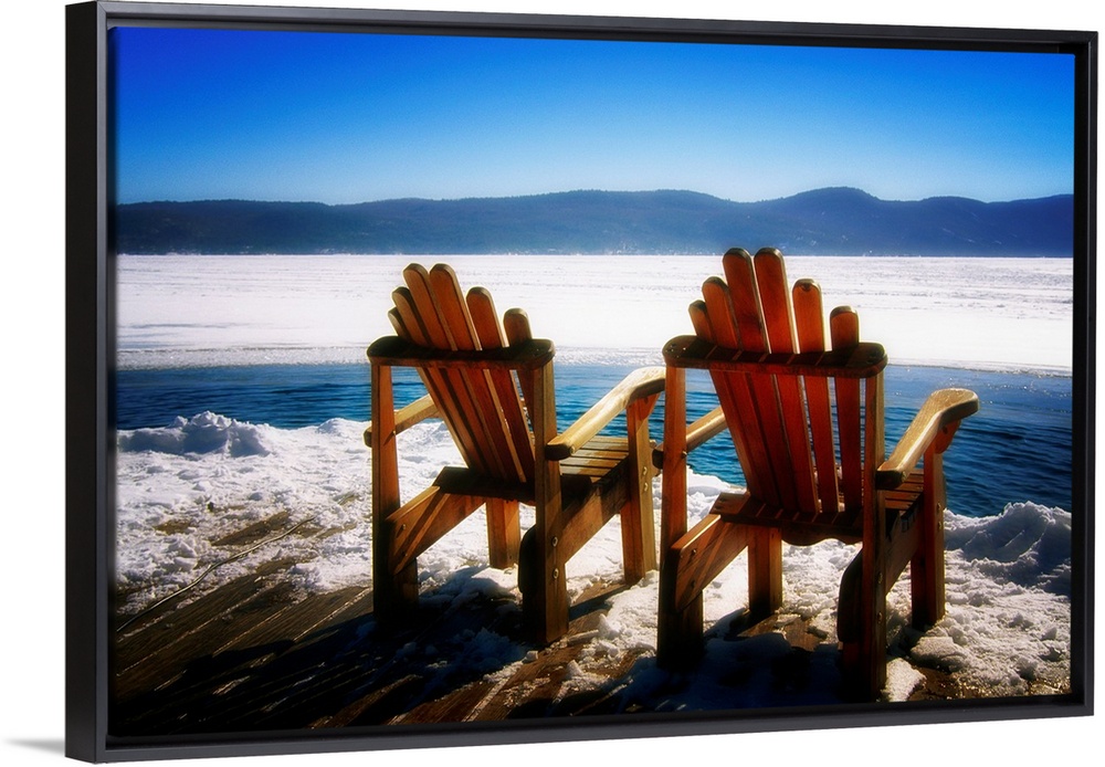<p>Two Adirondack Chairs on a Deck in Winter, Lake George, New York</p>