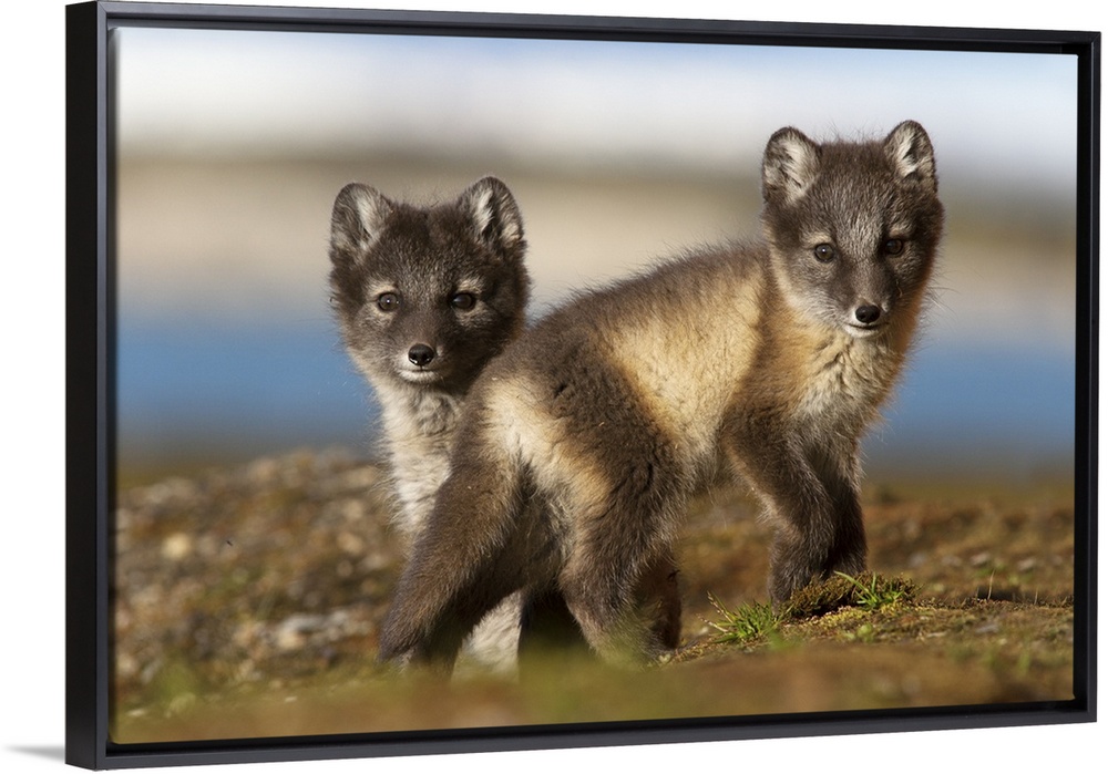 <p>Two Arctic Fox (Alopex lagopus) kits in the tundra, Svalbard,Norway</p>