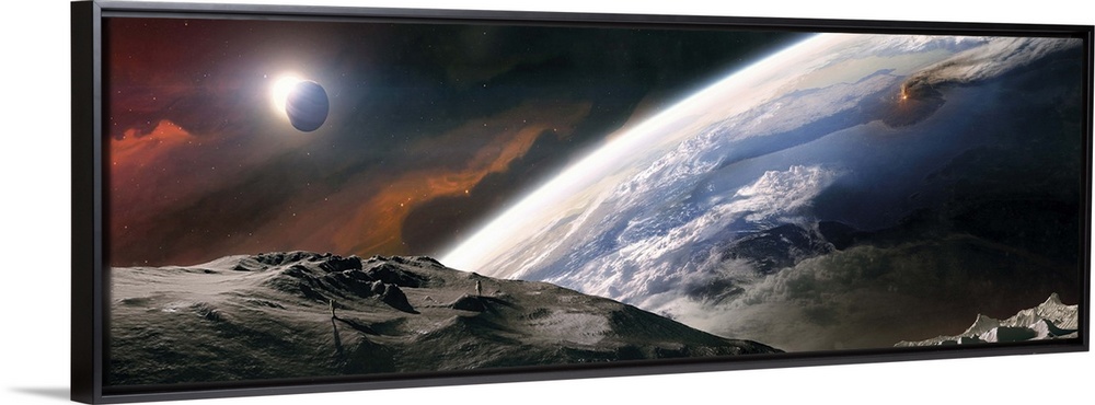 <p>Two astronauts exploring a moon.</p>