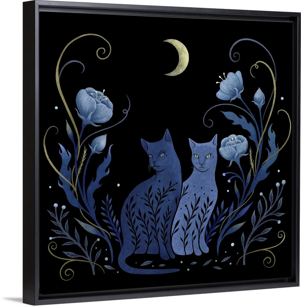 Art Blue Wall Art Decorative Art Episodic Drawing Fantasy Wildlife Florals Graphic Art Wildlife Cat