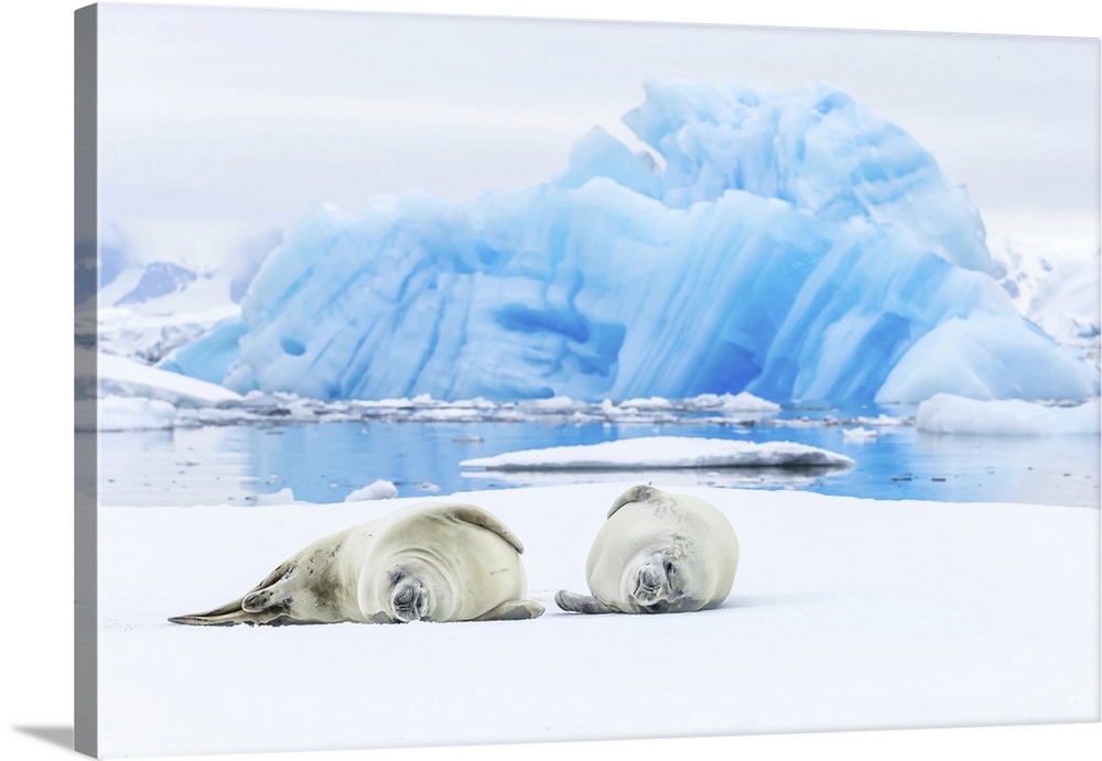 <p>Two Crabeater Seals lying on an ice floe in Grandidier Channel, Antarctica.</p>
