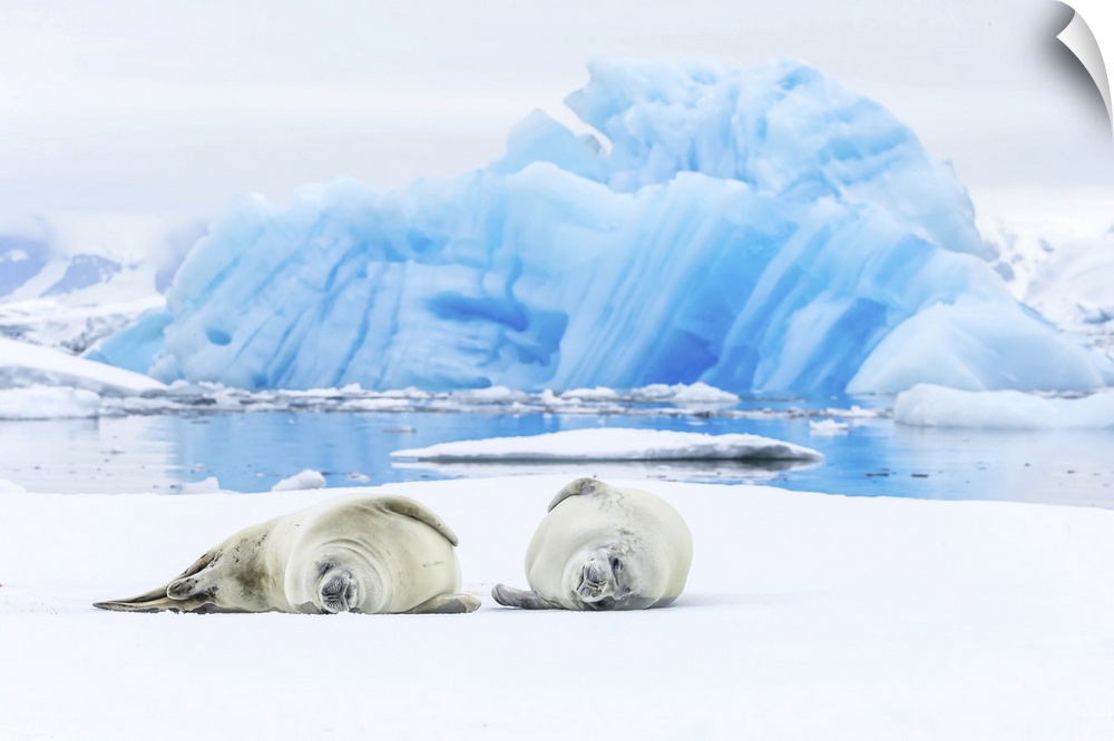 <p>Two Crabeater Seals lying on an ice floe in Grandidier Channel, Antarctica.</p>