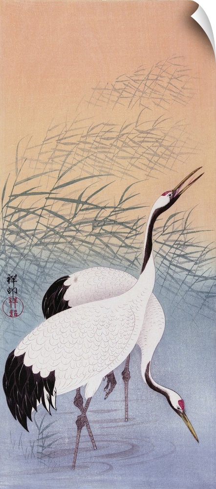 <p>Two Cranes, a colour woodcut by Japanese artist Ohara Koson, 1877 - 1945.</p>