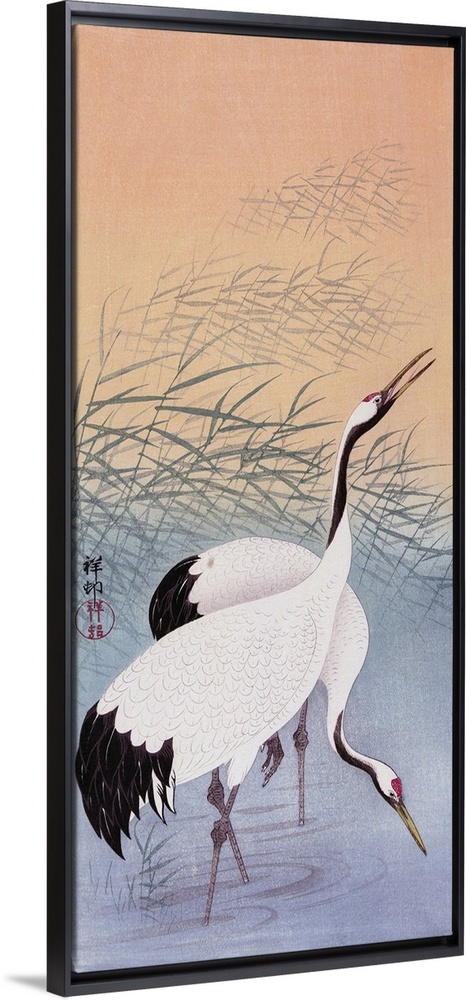 <p>Two Cranes, a colour woodcut by Japanese artist Ohara Koson, 1877 - 1945.</p>