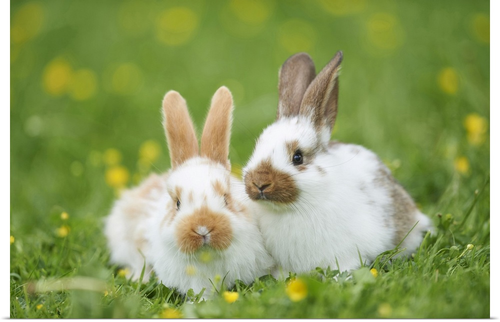 <p>Two Domestic Rabbits on Meadow in Spring, Upper Palatinate, Bavaria, Germany</p>
