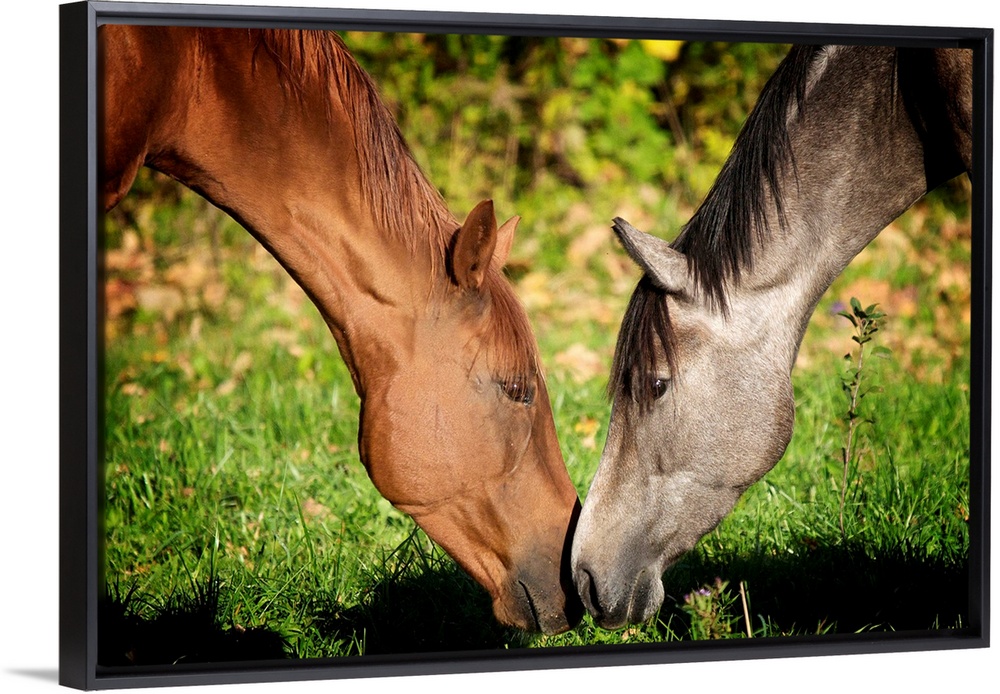 <p>Photo on canvas of two horses nudging eachother with their noses.</p>