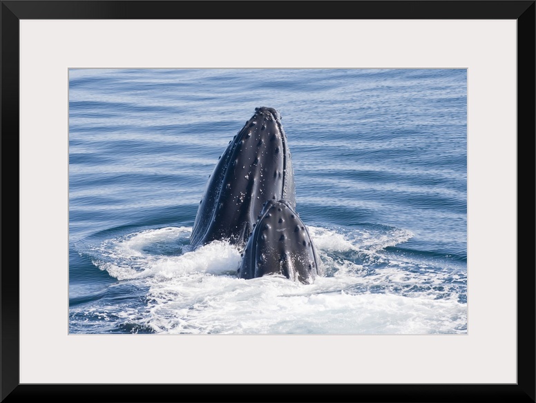 <p>Close-up portrait of two humpback whales (Megaptera novaeangliae) surfacing and splashing in the water of the Southern Ocean off of Antarctica Southern Ocean, Antarctica</p>