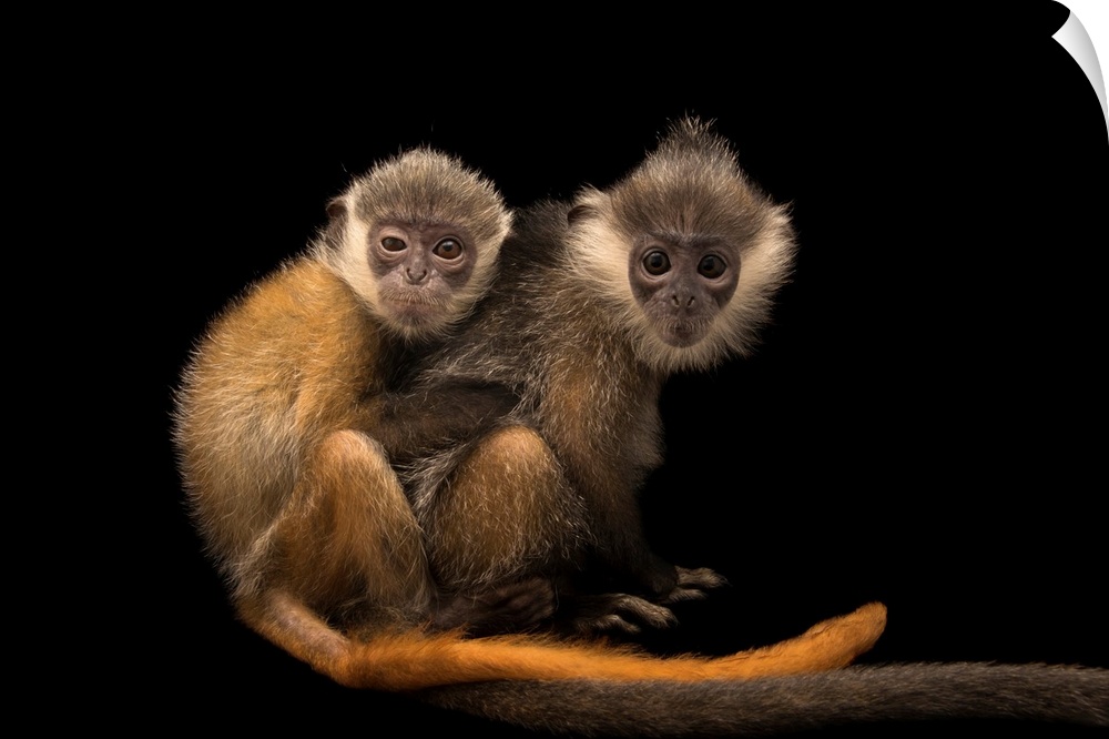 <p>A pair of rescued baby Indochinese silver langurs, Trachypithecus germaini, at the Angkor Center for Conservation of Biodiversity.</p>