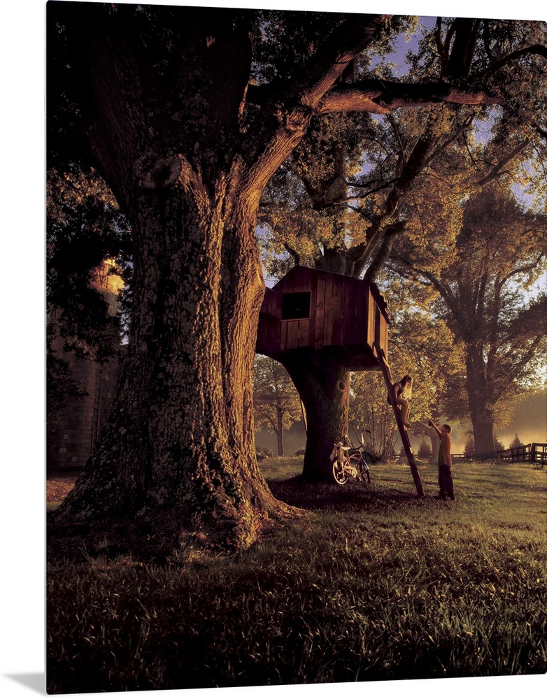 <p>Two kids play on a treehouse on a rural farm in North Carolina</p>