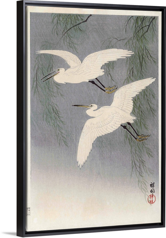 <p>Two Little Egrets in Flight, by Japanese artist Ohara Koson, 1877 - 1945. Ohara Koson was part of the shin-hanga, or new prints movement.</p>