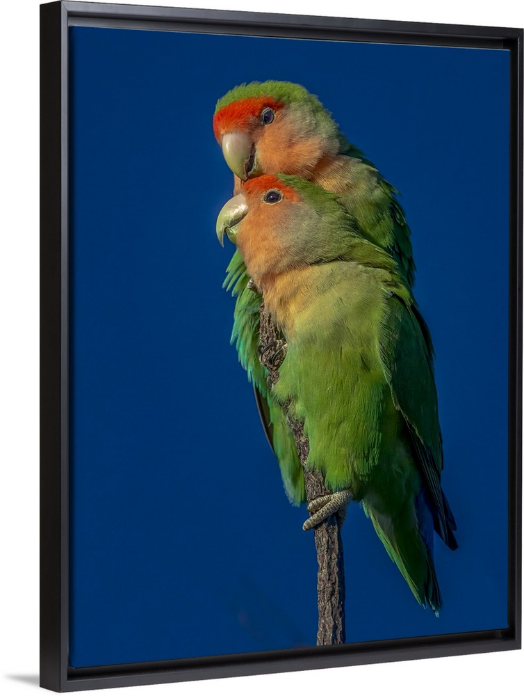 <p>Rosy-faced lovebirds (Agapornis roseicollis) preen, Namib Desert, Namibia</p>