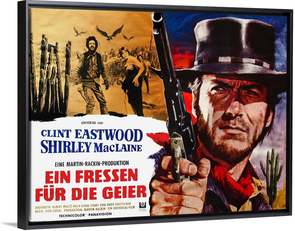 <p>Two Mules For Sister Sara, (aka Ein Fressen Fur Die Geier), Top Right: Shirley Maclaine, Right: Clint Eastwood On German Poster Art, 1970.</p>