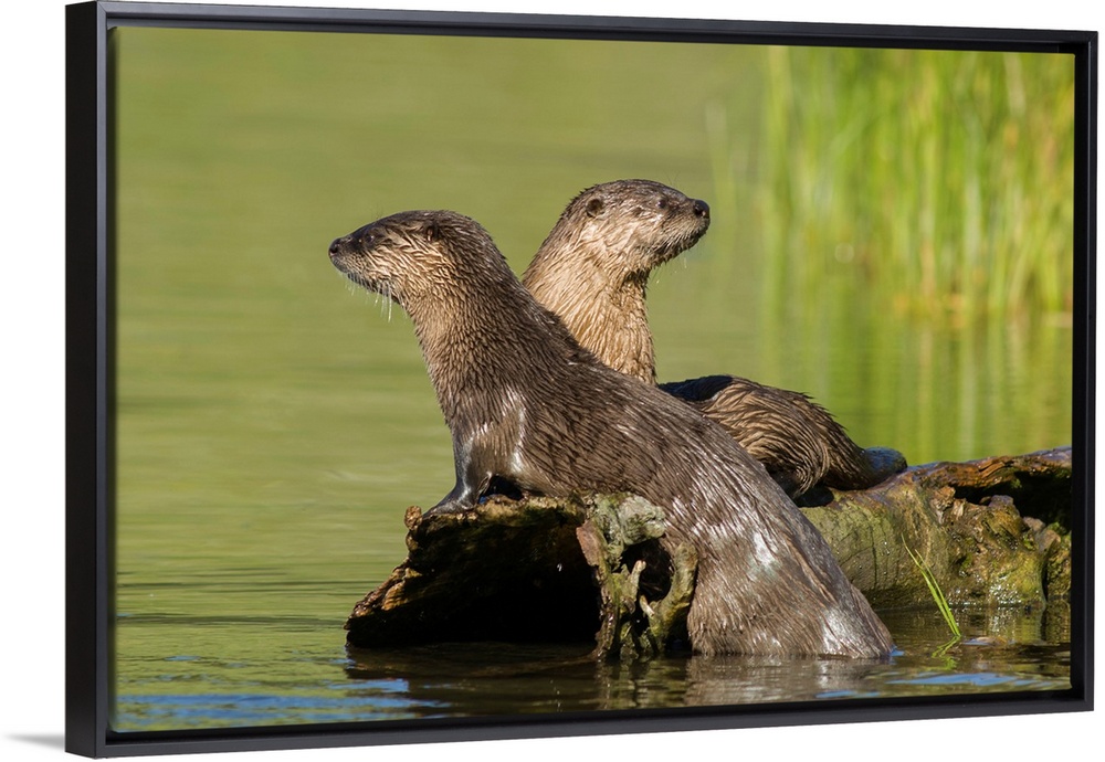 <p>Two Northern river otters (Lutra canadensis) enjoying a warm summer day in Yellowstone National Park, Wyoming, United States of America</p>