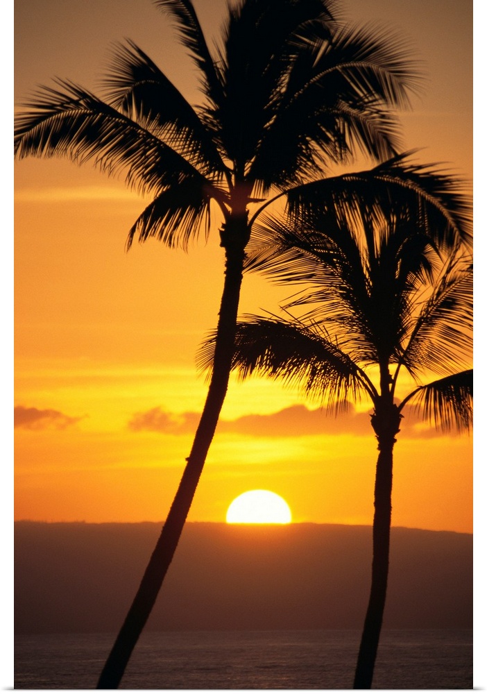 Sunset Trees Palm Photography Hawaii Bill Schildge