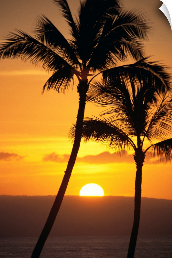 Sunset Trees Palm Photography Hawaii Bill Schildge