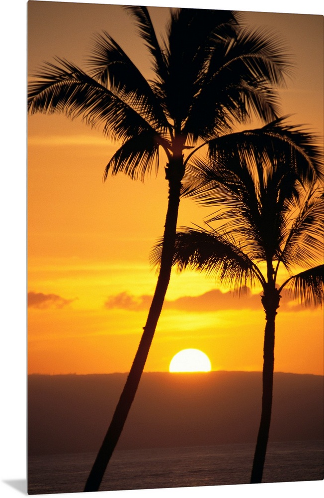Sunset Trees Palm Photography Hawaii Bill Schildge