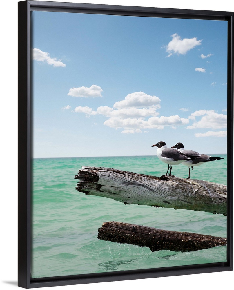 <p>Two seagulls sitting on a dead tree sticking out of the water on location at Sarasota Florida for Vacation, Freedom, Carefree, Summer Time, Adventure, Companionship, Togetherness, Escape</p>