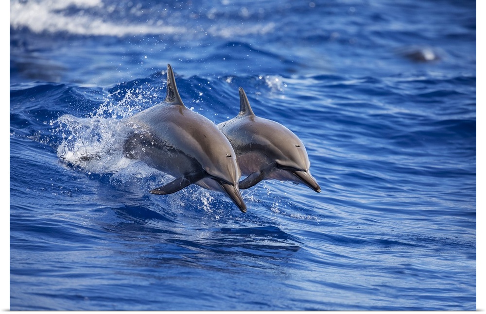 <p>Two Spinner dolphins (Stenella longirostris) off the island of Lanai; Lanai, Hawaii, United States of America</p>