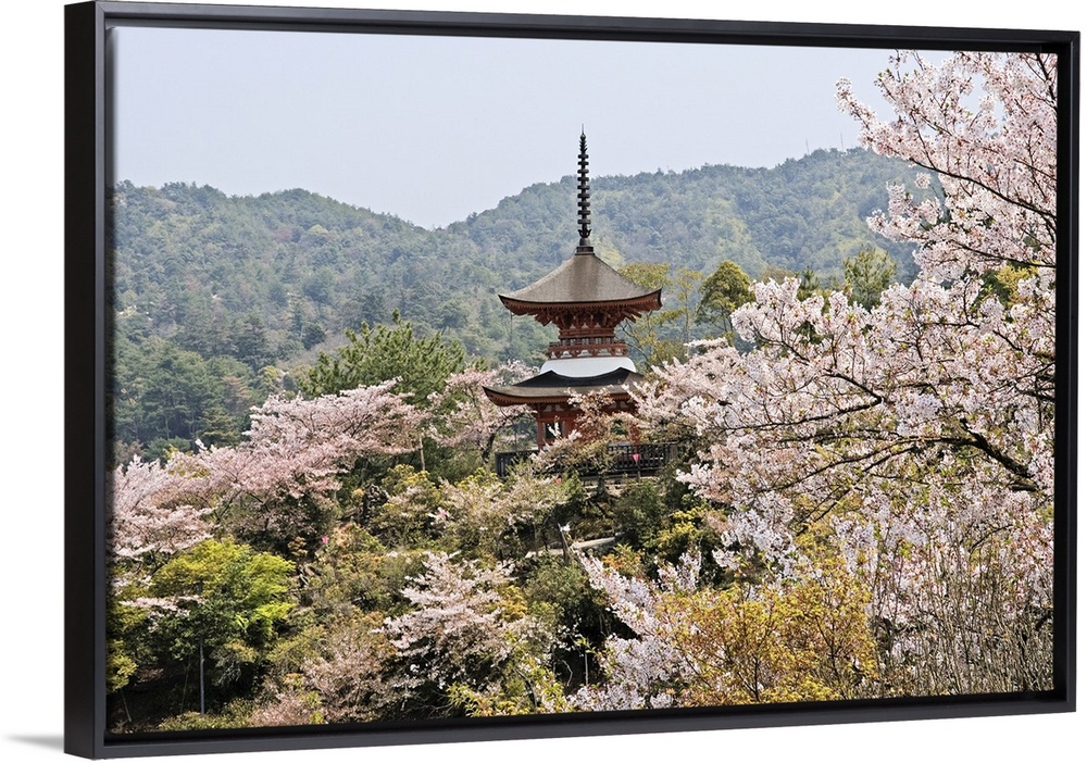 <p>Two-storied Tahoto Pagoda surrounded by cherry blossoms, Miyajima island, off Hiroshima, Japan</p>