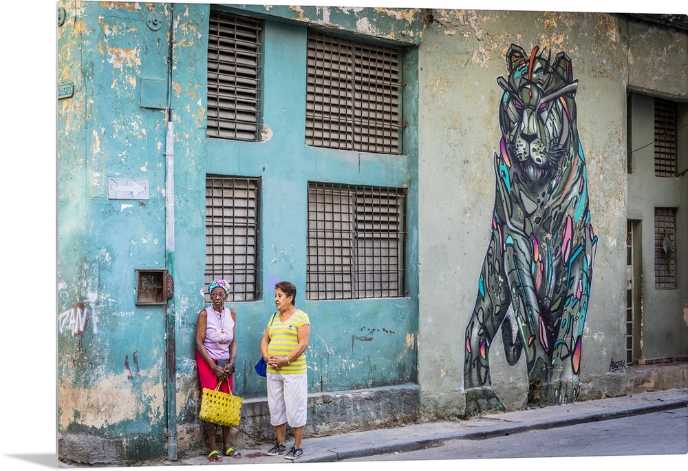 <p>Two women talking in a street in La Habana Vieja (Old Town), Havana, Cuba</p>