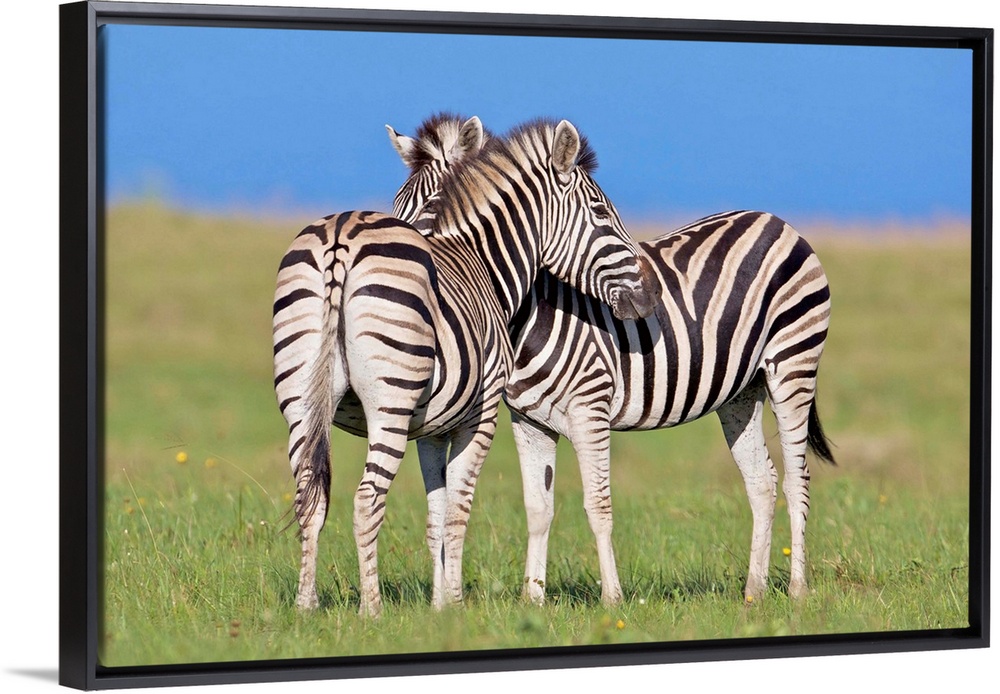 <p>Two Plains zebra (Equus quagga) on coastal plains, Mkambathi Game Reserve, Transkei Coast, Eastern Cape Province, South Africa</p>