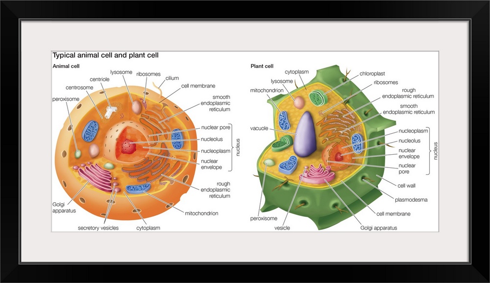 <p>An illustration from Encyclopaedia Britannica showing the differences between a plant cell and an animal cell, with all the parts labeled.</p>