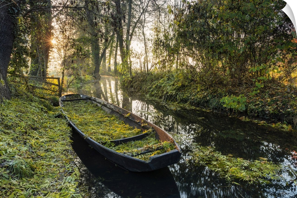 <p>typical boat on a canal in the Spreewald, Biosphere reserve Spreewald, Brandenburg, Germany, Europe.</p>
