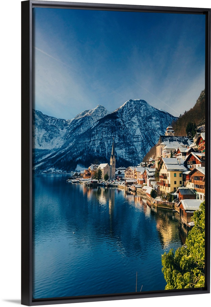 <p>Typical village called Hallstatt con the Hallstatter see at sunrise with the houses reflecting in the lake.</p>