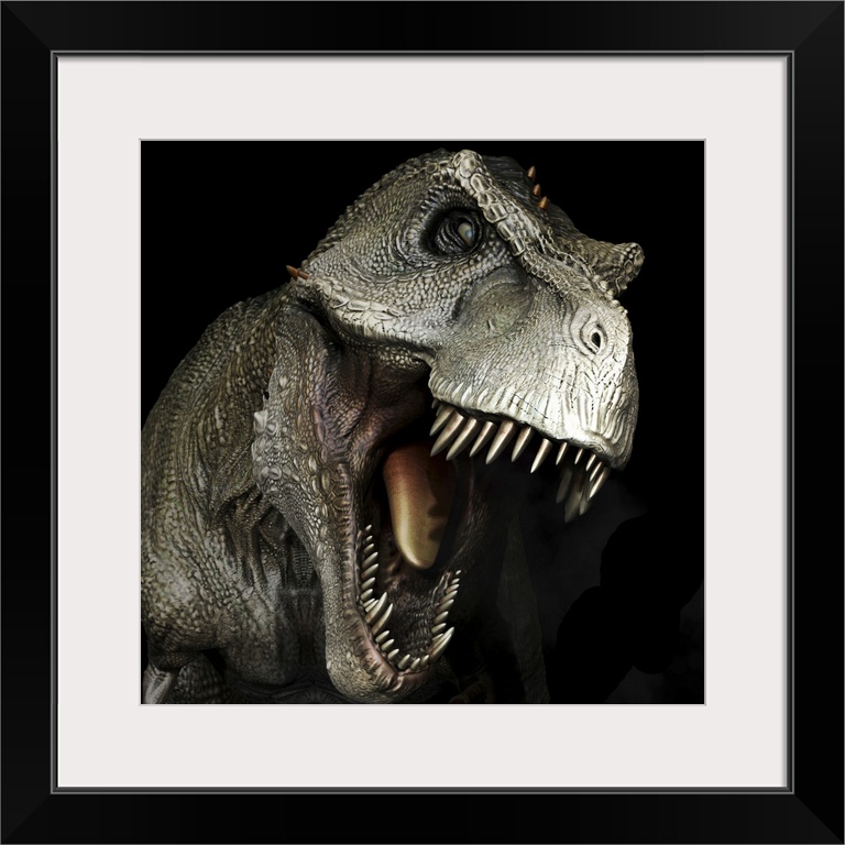 <p>Tyrannosaurus rex dinosaur head, front view.</p>