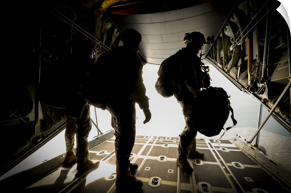 <p>U.S. Army Green Berets wait to jump out of a C-130H3 Hercules.</p>