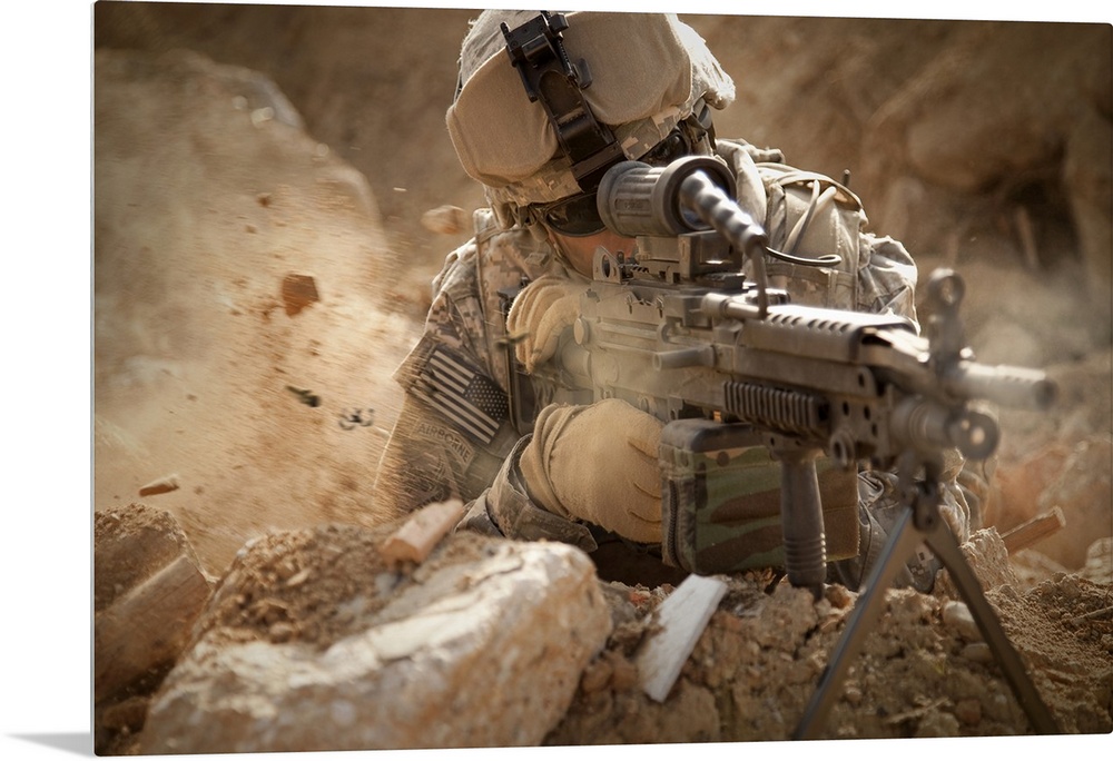 <p>U.S. Army Ranger in Afghanistan combat scene.</p>