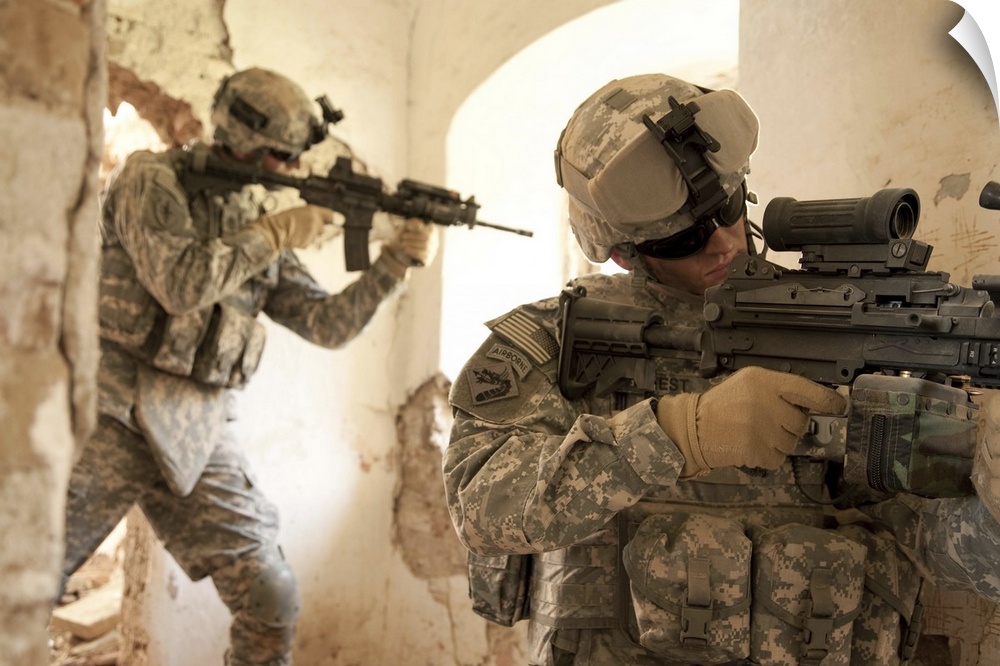 <p>U.S. Army Rangers in Afghanistan combat scene.</p>