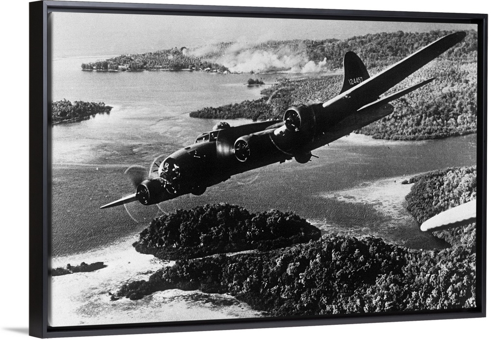 <p>An American Flying Fortress carrying out a bombing sortie against Japanese bases on the Solomon Islands during World War II.</p>