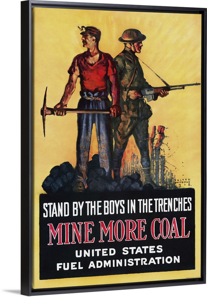 <p>U.S. history print of a miner and a soldier standing alongside each other holding a pickaxe and a rifle respectively. Set up during the First World War as the agency of the Federal Government on August 23, 1917, the U.S. Fuel Administration was responsible for the management of coal and oil in the country.</p>