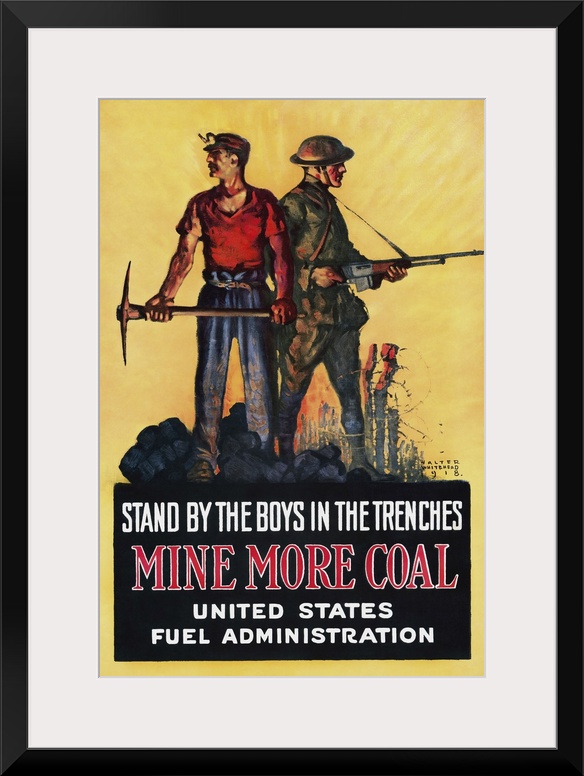 <p>U.S. history print of a miner and a soldier standing alongside each other holding a pickaxe and a rifle respectively. Set up during the First World War as the agency of the Federal Government on August 23, 1917, the U.S. Fuel Administration was responsible for the management of coal and oil in the country.</p>