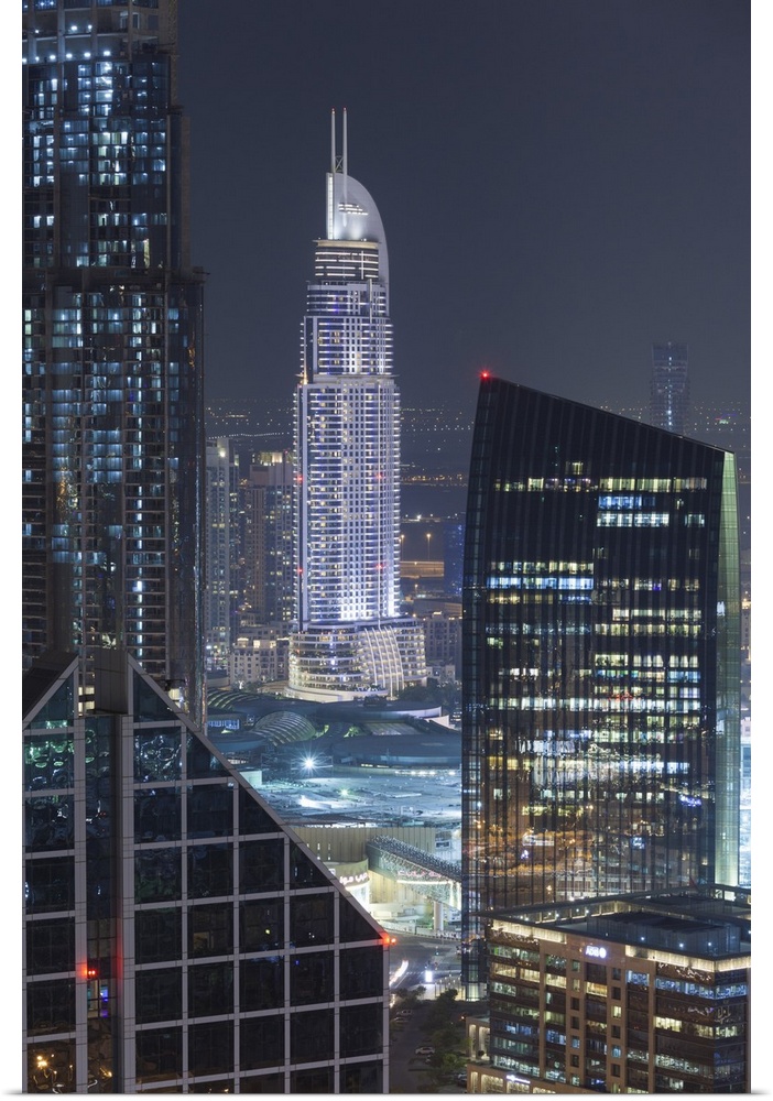 <p>UAE, Dubai, Downtown Dubai, The Address Downtown Hotel, elevated view, dusk</p>