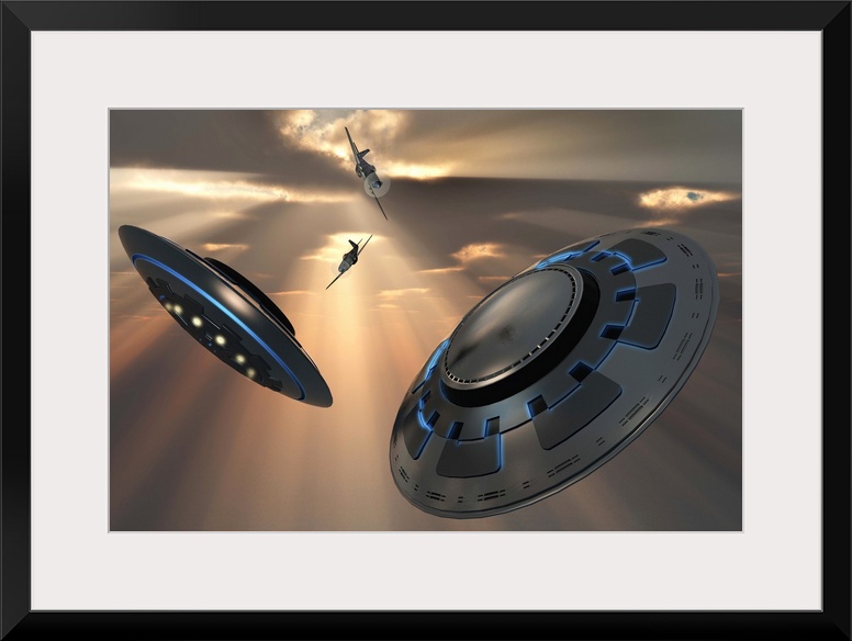 <p>A 3D conceptual image illustrating UFO's and fighter planes in the skies over Roswell, New Mexico. In July 1947 it was reported that an extraterrestrial flying saucer had crashed at a place known as Roswell, New Mexico, USA. Conspiracy and denials have come and gone ever since.</p>