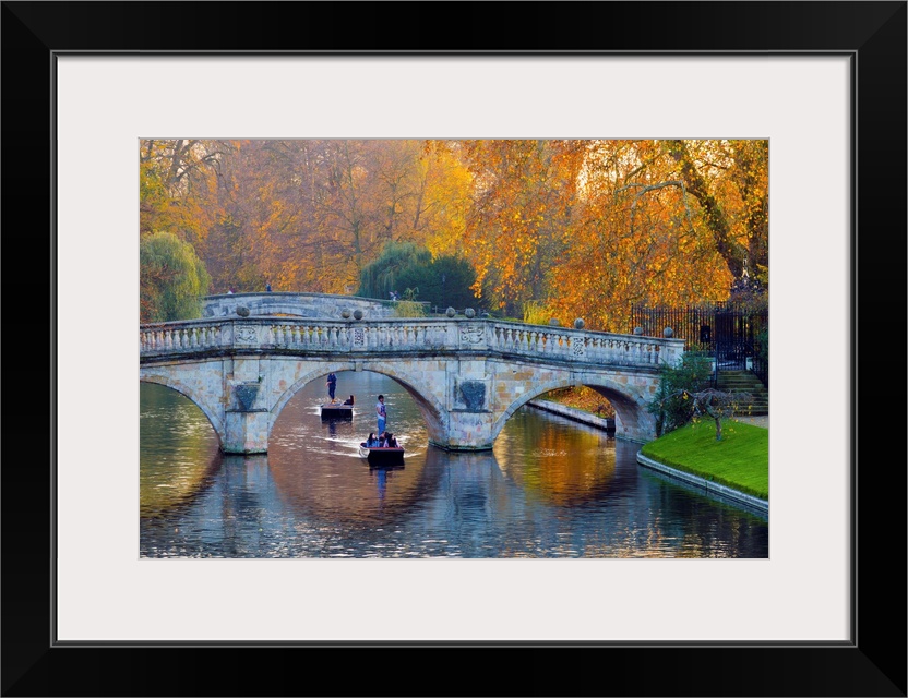 <p>UK, England, Cambridge, The Backs, Clare and King's College Bridges over River Cam in Autumn</p>