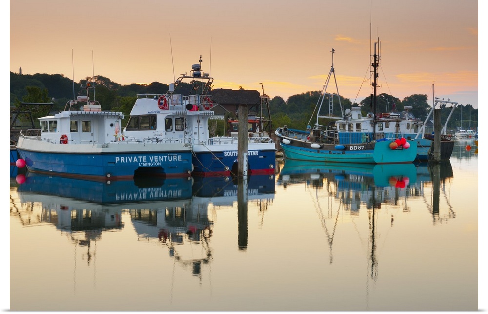 <p>UK, England, Dorset, Lymington, The Quay on Lymington River, Fishing boats</p>