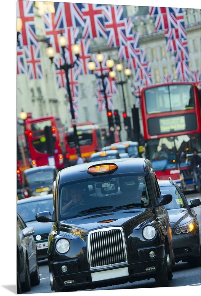 <p>UK, England, London, Regent Street, Union Jack Flags marking the Royal Wedding of Prince William and Kate Middleton</p>