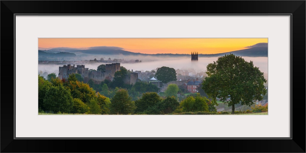 <p>UK, England, Shropshire, Ludlow, Ludlow Castle And St Laurence's Church At Sunrise</p>