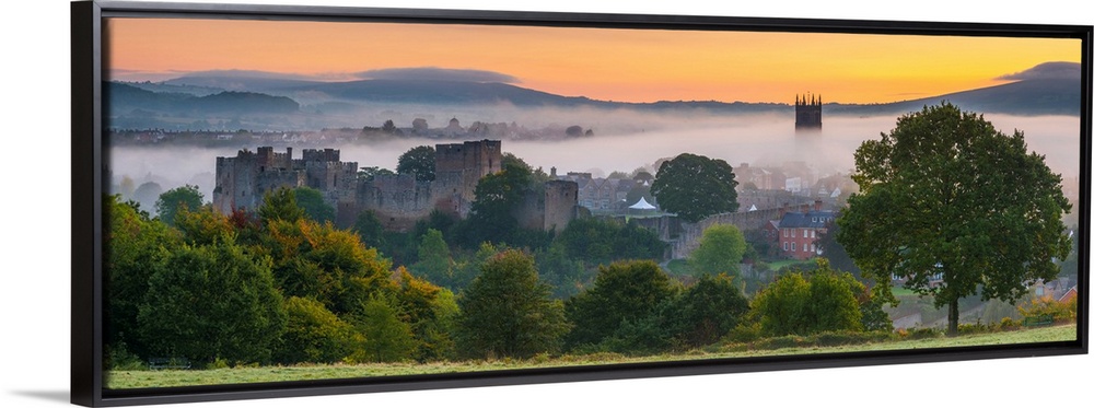 <p>UK, England, Shropshire, Ludlow, Ludlow Castle And St Laurence's Church At Sunrise</p>